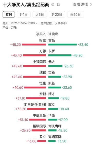 另据富途数据显示,最大净卖出方富昌单日抛售53.40万股,远超其他卖出方(长桥-43.20万、元大-26.30万、宝新-23.90万),合计前四大卖出方共抛售146.80万股。