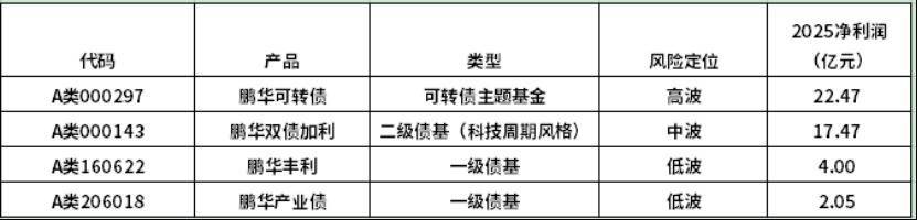 值得关注的是,鹏华旗下“固收+”赛道盈利能力大幅回升。该品类净利润从2024年末的20.83亿元跃升至2025年末的53.94亿元,增幅近159%。拆解来看,这一跨越式增长既受益于规模扩张,也得益于2025年权益结构性行情下单位净值的提升,量价齐升共同推动了盈利跃升。更深层的原因在于,鹏华固收在“固收+”领域长期积淀的策略体系与投研能力——不同波动梯度的产品线布局,使得团队能够在多变的市场环境中灵活捕捉机会。
