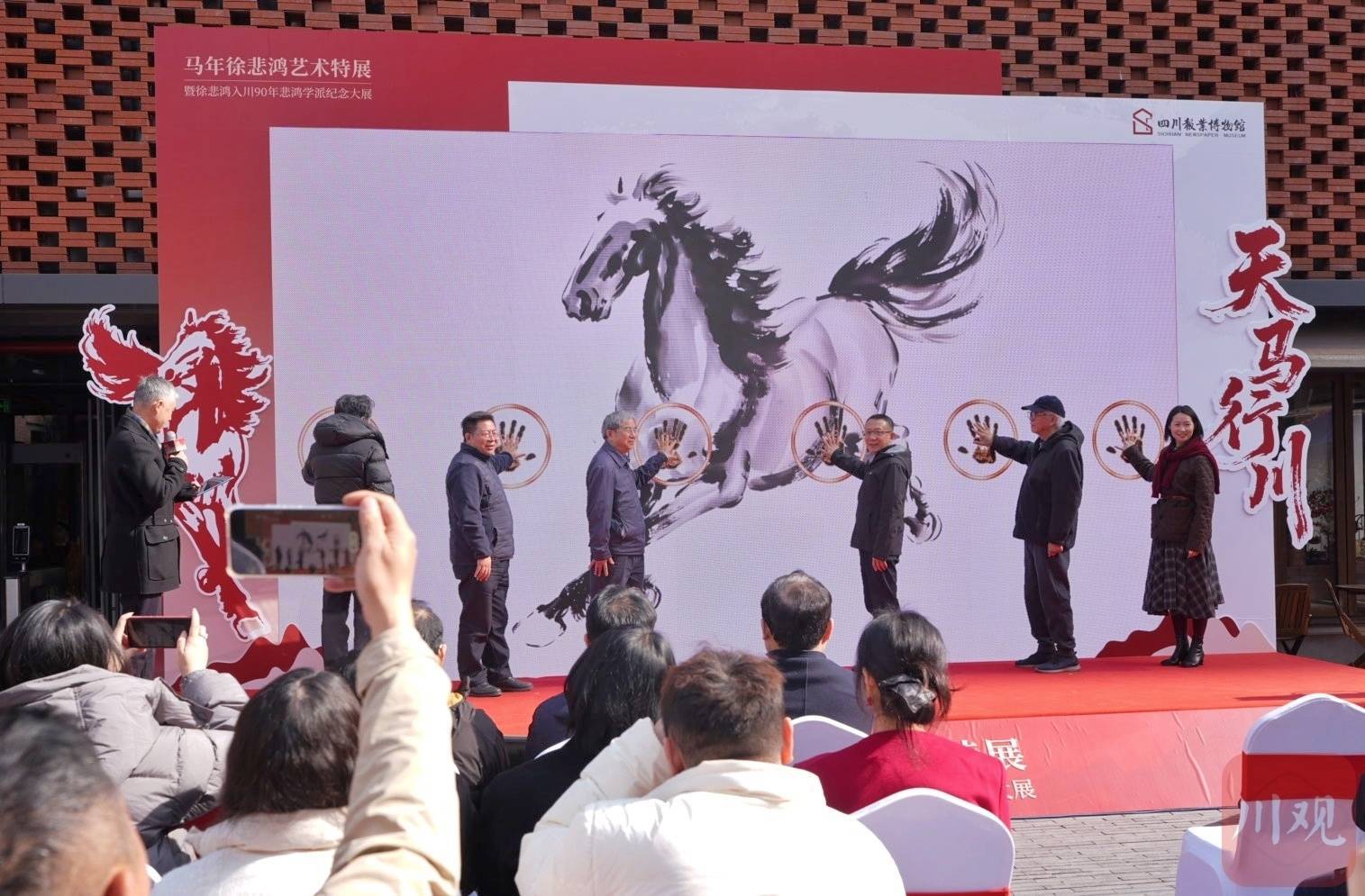 r2月10日下午,天马行川——马年徐悲鸿艺术特展暨徐悲鸿入川90年悲鸿学派纪念大展在四川报业博物馆开展。展览系统梳理徐悲鸿及其学派在川艺术足迹,展出含24件徐悲鸿真迹在内的数十件代表作,涵盖《奔马》《墨马》等经典,展期将持续至8月10日。