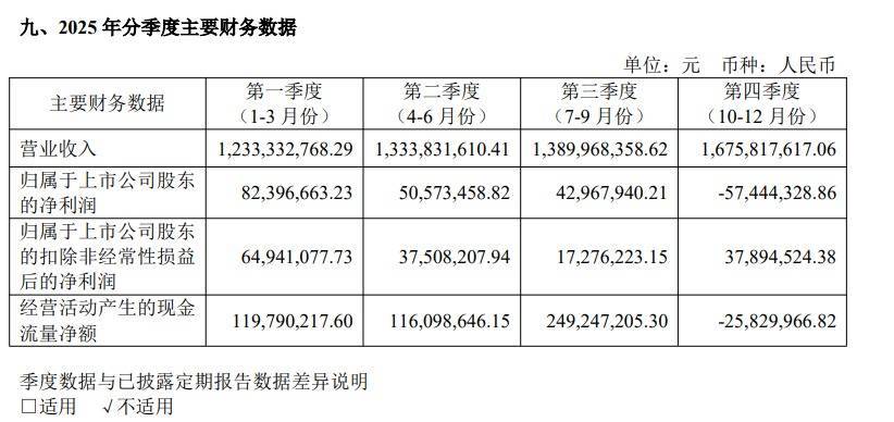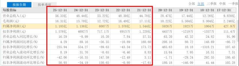 从季度表现来看,2025年第四季度公司实现营业收入16.76亿元,同比上升34.13%,营收端保持高速增长,但利润端出现阶段性波动,单季度归母净利润亏损5744.43万元,同比下降301.01%,不过单季度扣非归母净利润实现扭亏为盈,达到3789.45万元,同比上升347.78%。这一波动也直接导致全年归母净利润增速不及中期水平。