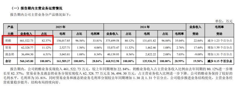 到2025年,奶酪业务(含奶酪棒)收入占公司总营收的比例已达82.37%,一个细分品类成为支撑上市公司发展的核心支柱。
